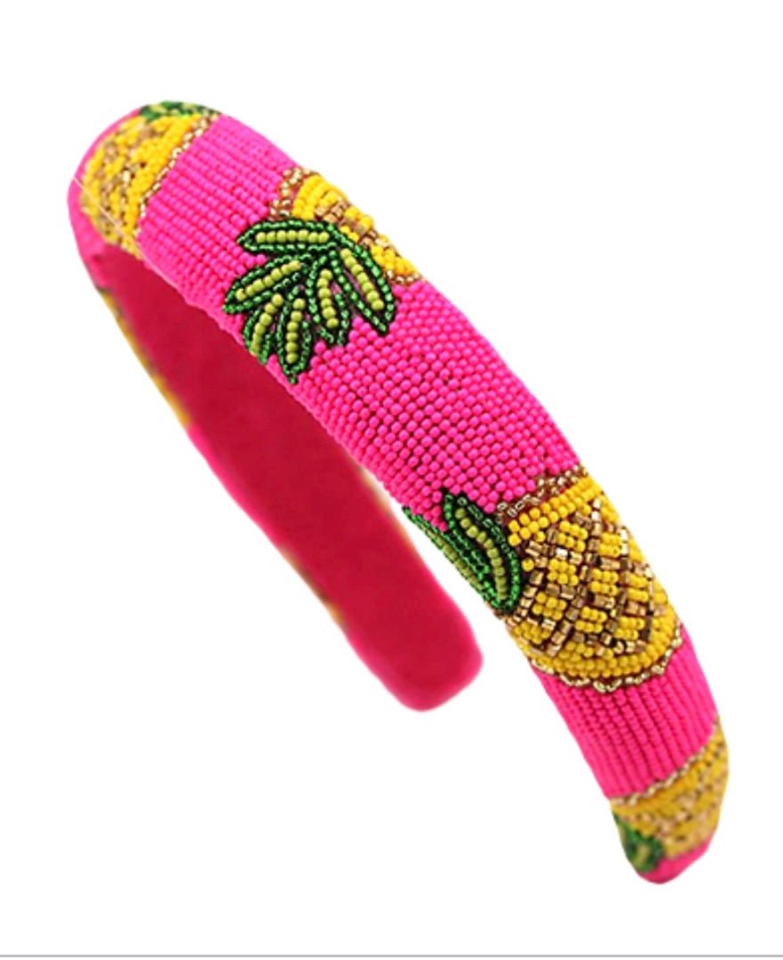Pink/Yellow pineapple fulled beaded headband