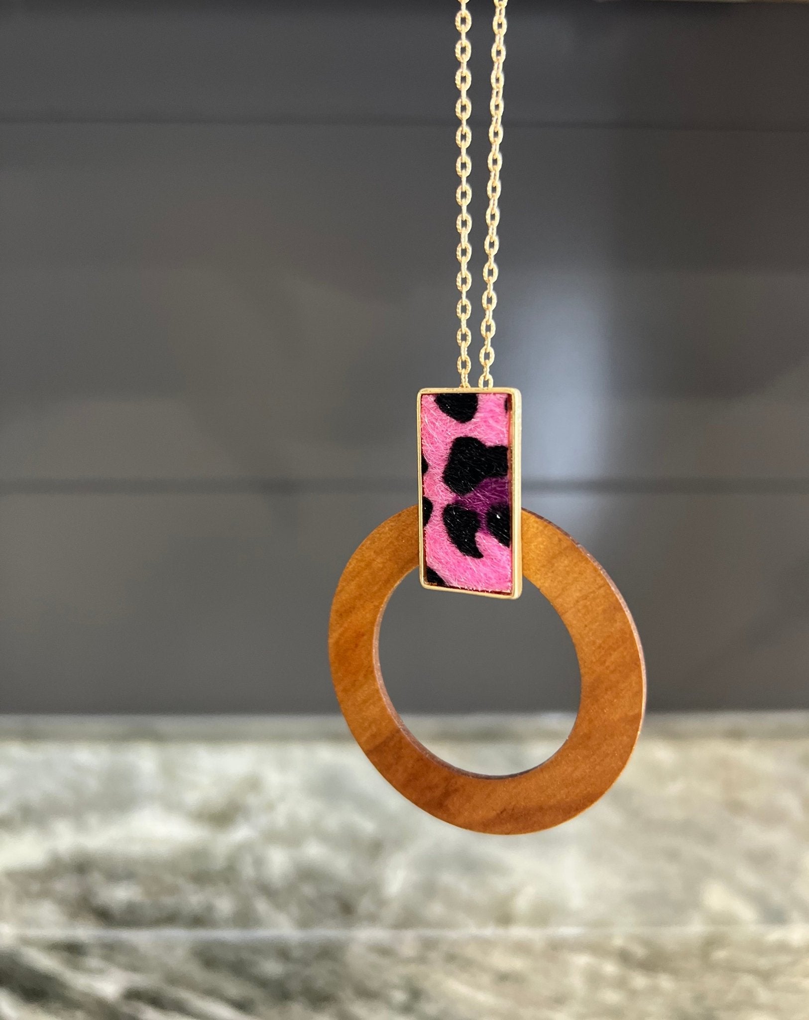 Wooden circle with pink leopard accent piece