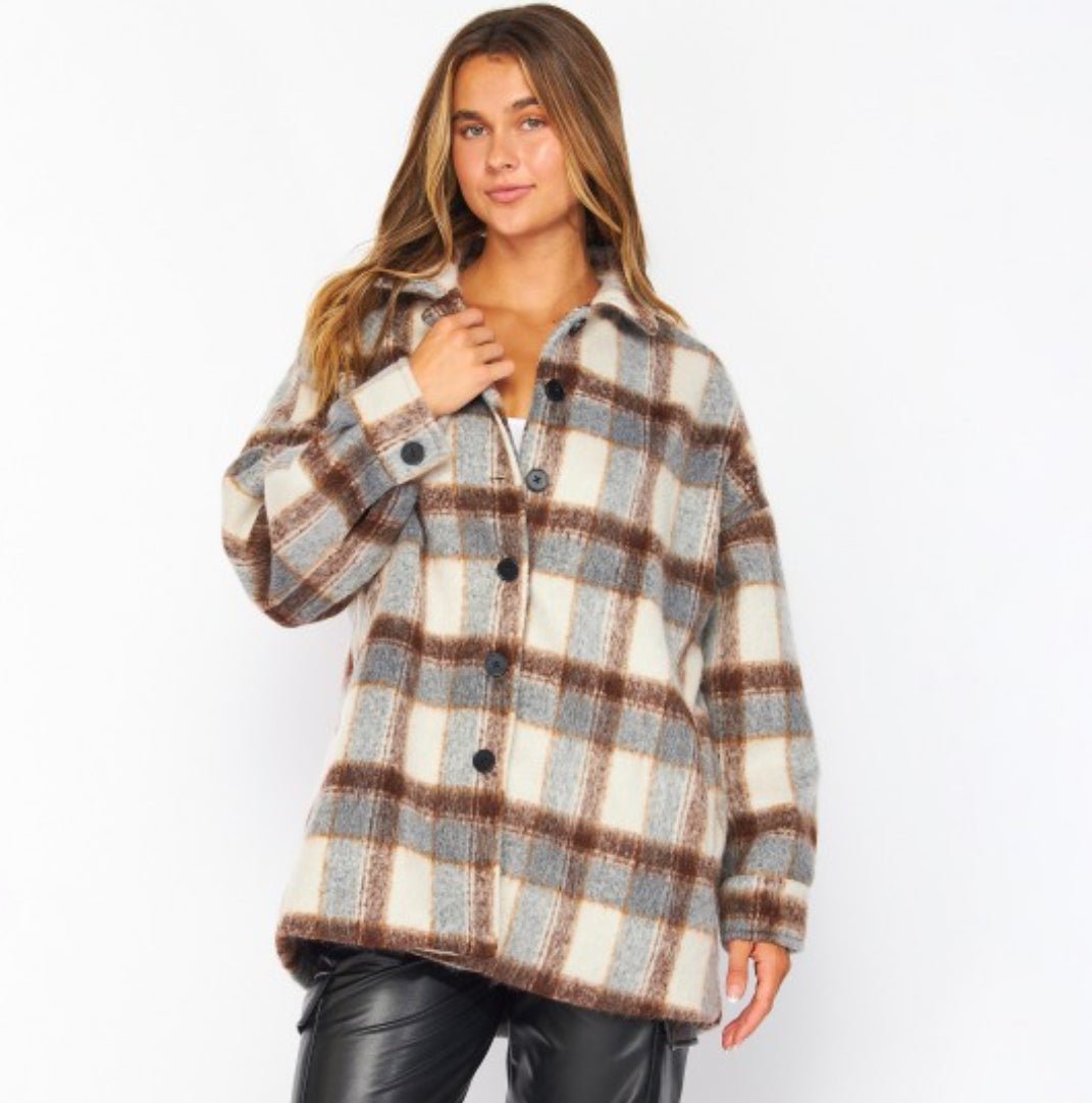 Oversized Heavyweight Faux Wool Plaid Shacket