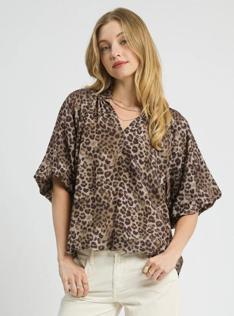 Leopard Trim Dolman Top-Plus