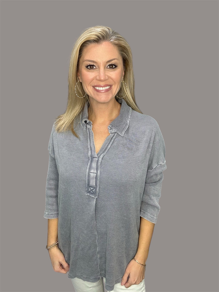 Washed Denim Blue Thermal Top