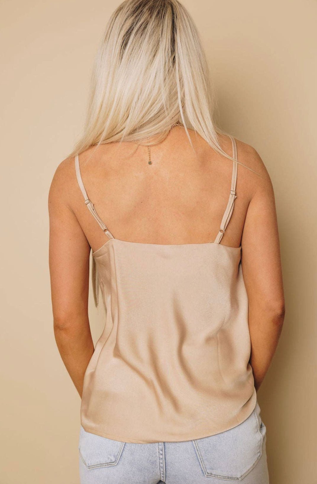 Scoop front spaghetti strap elegant tank top that is perfect for a night out or pair with a blazer for a day at the office. Straps are adjustable for perfect fit for everyone.