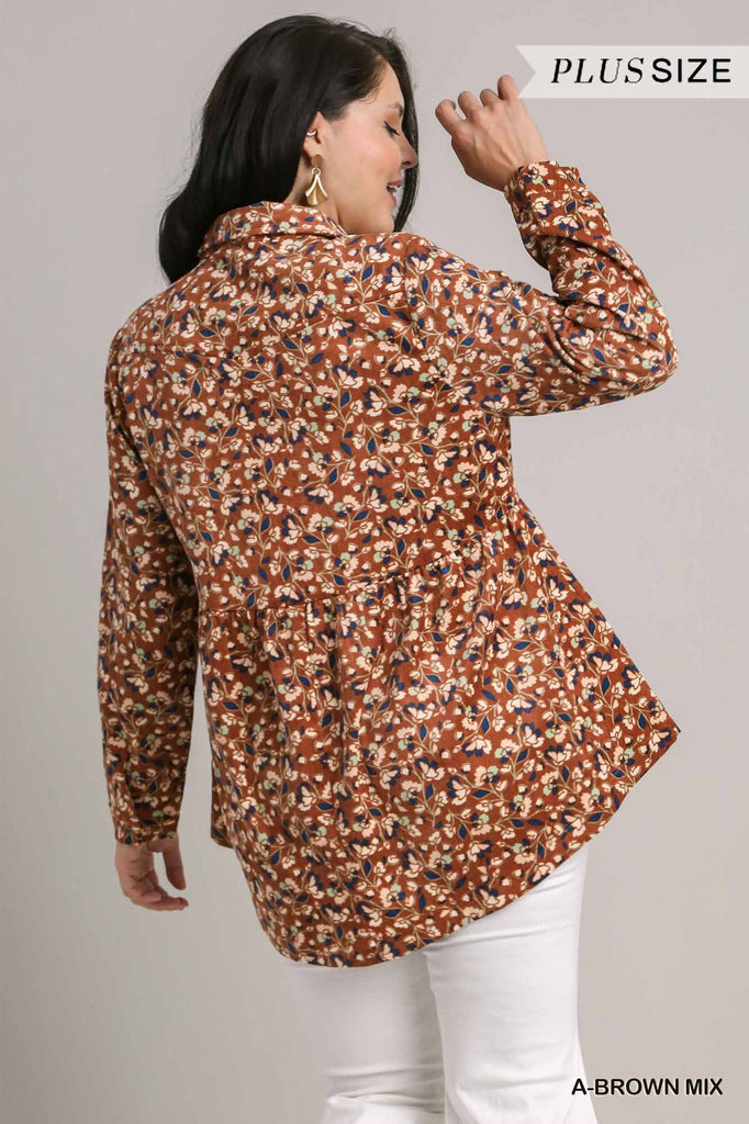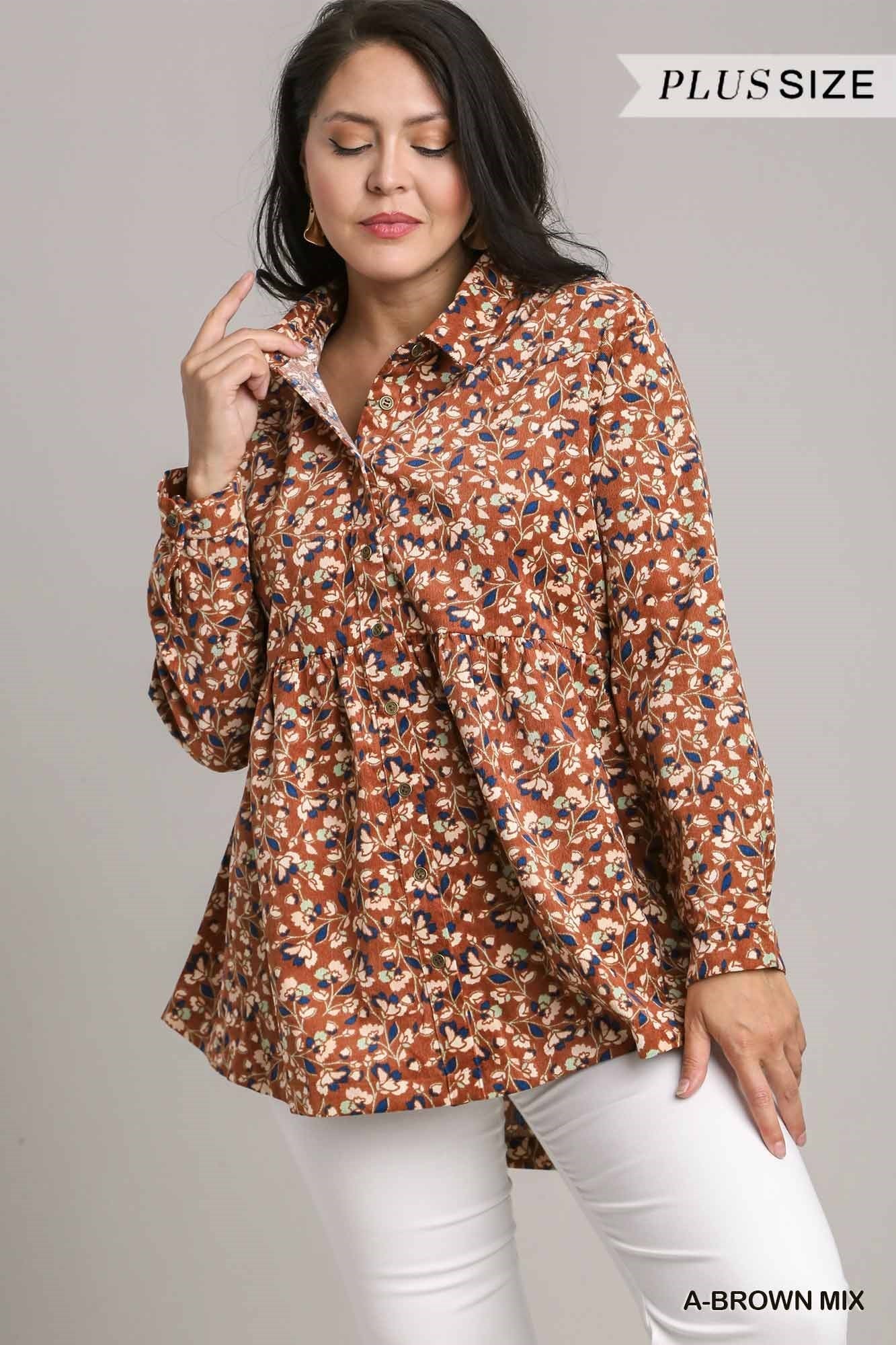 Expertly crafted in soft corduroy fabric, the Falling For You Floral- Plus top showcases a delightful mix of neutral floral prints. The high-low hem adds a feminine touch, making it a perfect choice for your fall/winter wardrobe.