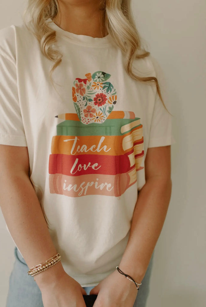 Love Teach Inspire Tee- Comfort Color - Medium is backordered and will ship as soon as it is back in stock.