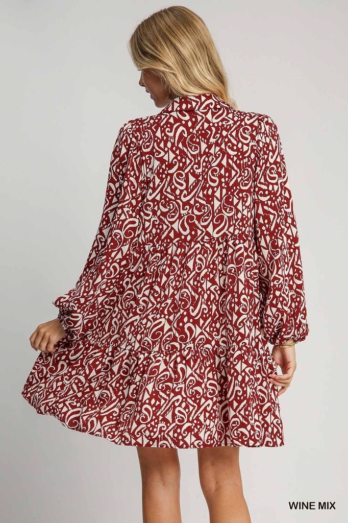 This Wine Mix Collared Mini features a flattering A-Line design, that is flattering fora all body types. With long balloon sleeves and a stylish collared split neck, this dress offers both comfort and chic style. Elevate your wardrobe with this versatile piece.
